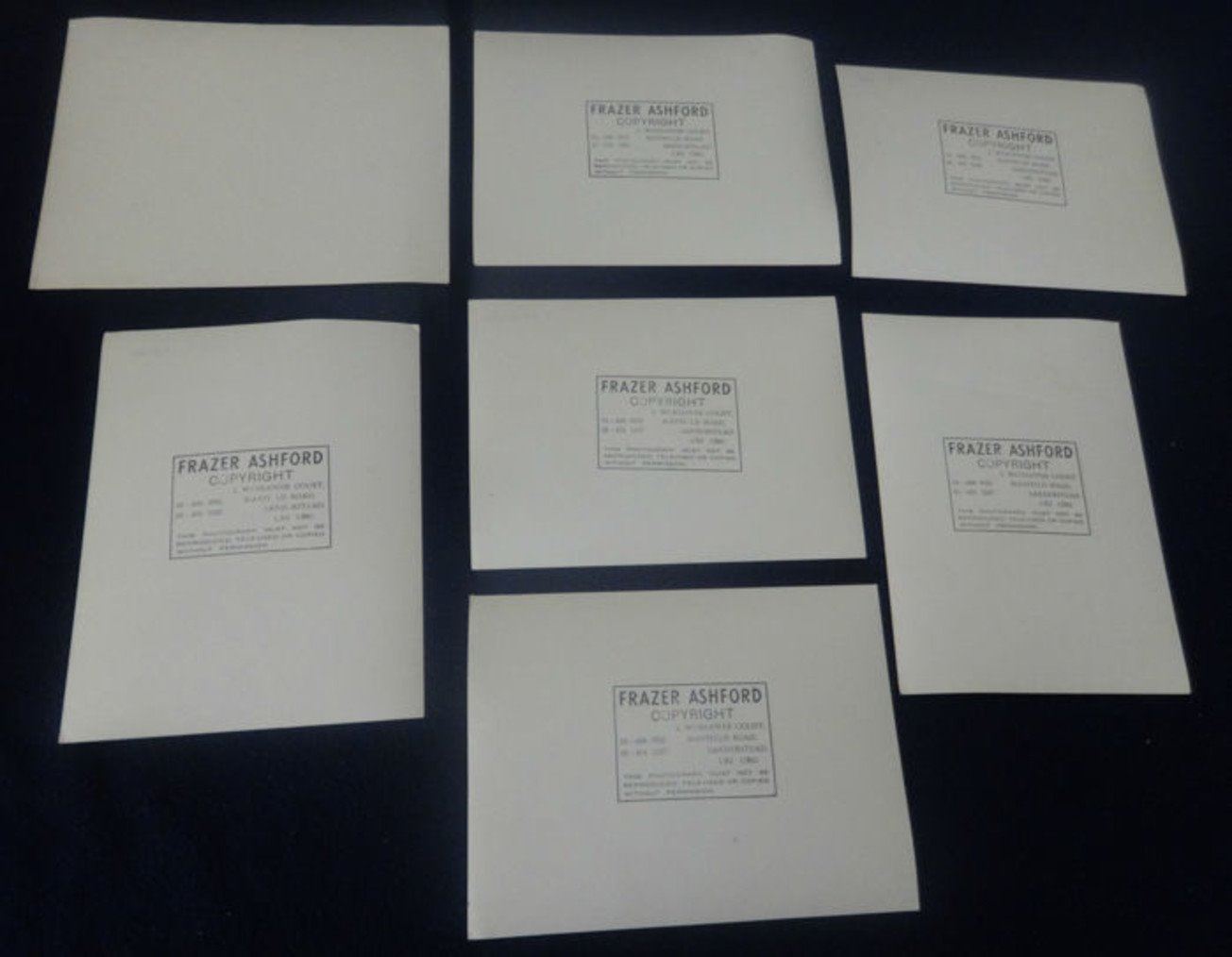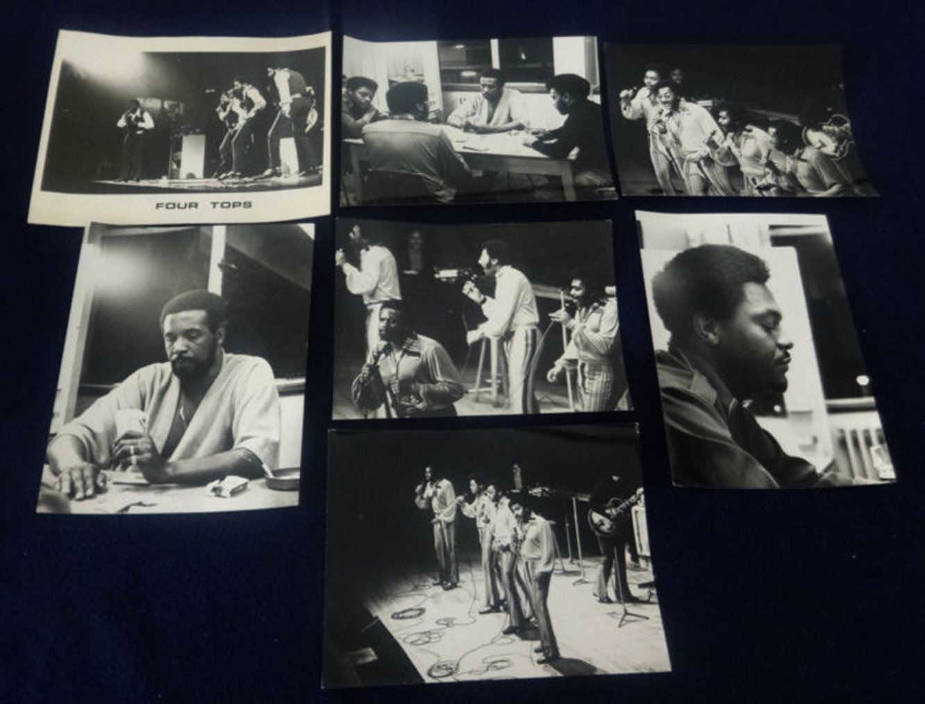 Total Dimensions (H/ W/ D in cm): 24.13x17.78. Picture size (in cm): 24.13x17.78 Year: 1968. A collection of 6 photos by British photographer Frazer Ashford Of The American Motown band 'The four Tops' in the 1960's. Unknown print date. They show the original line up of the band on stage and behind the scenes. Condition: Very good, with one of the photos having a crease in it. Photos are 24x17 cm's or bigger.