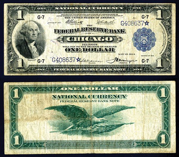 FRBN, 1918, Chicago, Fr#729*, $1 Star Note.