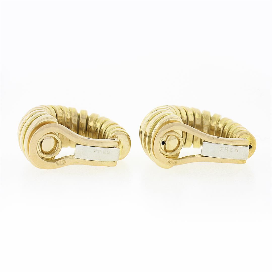 A pair of solid 14k yellow gold hoop earrings by Fred. The earrings measure approximately 23.25x10.80mm and weigh a total of 19.71 grams.