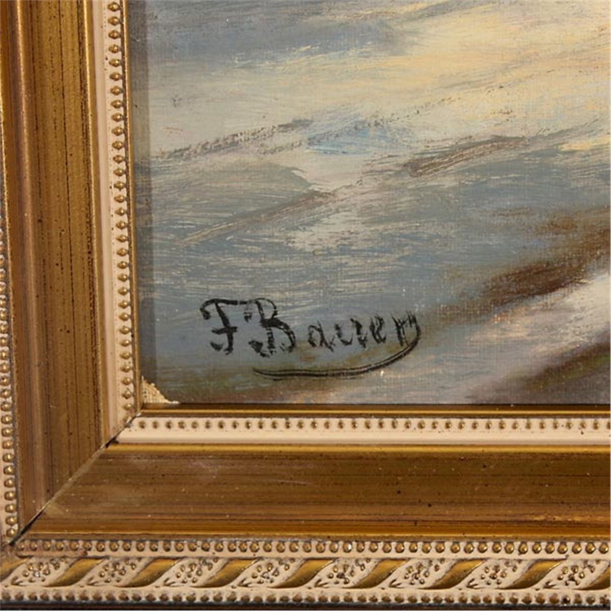 FREDERICK BAUER (American b.1857) Arriving Oil on board 12 x 16 inches/ 30.5 x 40.7 centimeters Signed lower left "F Bauer" Frame: 14.75 x 17.5 inches/ 37.5 x 44.5 centimeters In good condition: Multiple small spots of paint loss