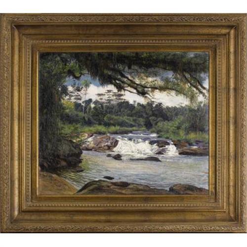 <B>FREDERICK W. BECKER (1888-1974)</B></I><BR>Untitled<BR>Oil on canvas<BR>20 x 24 inches (50.8 x 61.0 cm)<BR>Signed lower right<BR><BR> Frederick W. Becker was an itinerant artist who traveled widely in the West. Before coming to Texas, he painted in Taos and in Southern California. In 1931-1932, he was head of the Fine Arts Department at Oklahoma City University. In the late 1930s and 1940s, Becker worked in the San Antonio and Big Bend areas of Texas. During that time he was president of the Society of Texas Artists and a member of the Southern States Art League. He is widely known for his western landscapes.<BR><BR>This is a wonderful scene of a small waterfall in a lush tropical setting with over-hanging tree and Spanish moss.<B>Condition Report:</B> Inpainting to whites in the sky and whites on the waterfall. Period frame in excellent condition.<BR><BR><b>Shipping:</b> Requires 3rd Party Shipping (<a target="_blank" href="http://www.heritageauctions.com/common/shipping.php">view shipping information</a>)