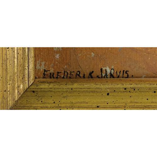 <B>FREDERICK JARVIS (1898-1966)</B></I><BR>Untitled<BR>Oil on canvasboard<BR>8in. x 10 3/4in.<BR>Signed lower left<BR><BR>W. Frederick Jarvis studied at the Art Students League in New York and in Munich with Franz Mueller. Jarvis came to Dallas in 1922 and taught at the Merdick Fine Arts School. In 1926, he moved to New York City and Washington, D.C., where he became Federal Art Director. In the mid-1930s, he moved back to Texas, eventually settling in Dallas where he established his own school named the "Texas School of Painting" located at 4305 Ross Avenue.<BR><BR> <B>Condition Report:</B> Excellent condition. New frame in excellent condition.<BR><BR><b>Shipping:</b> Requires 3rd Party Shipping (<a target="_blank" href="http://www.heritageauctions.com/common/shipping.php">view shipping information</a>)