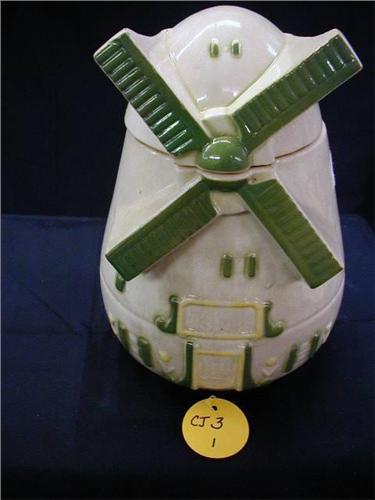FREDERICKSBURG ART POTTERY COOKIE JAR inWINDMILLin C. 1939-48 (INTERIOR BROWNING RIM CHIP EXTERIOR GLAZE ISSUE)