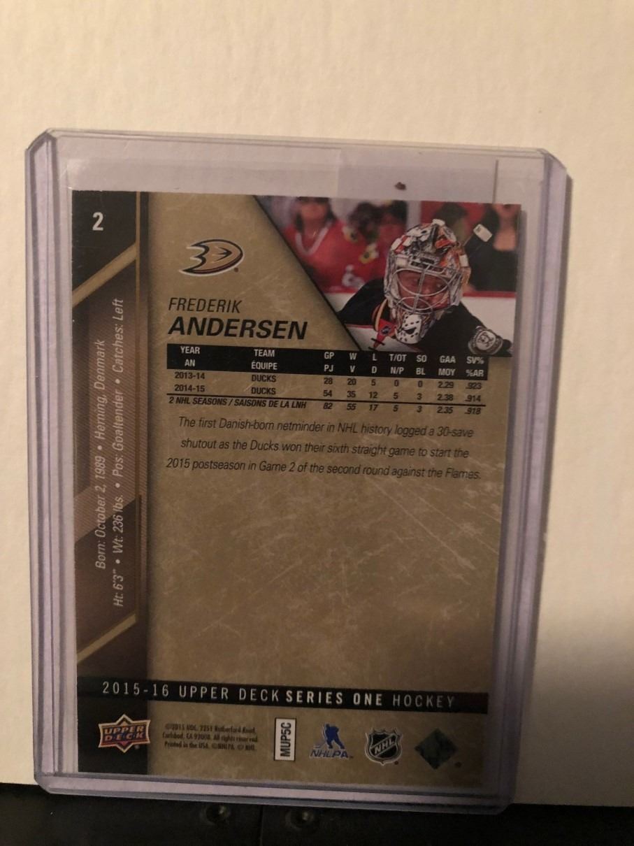 FREDERIK ANDERSEN 2015-16 UD EXCLUSIVES 093/100 SERIES 1