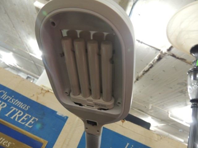 NICE FLUORESCENT BULB FLOOR LAMP FOR STUDY, READY, ETC. FLEXIBLE SNAKE STYLE NECK. AS SHOWN. STANDS 54" TALL.