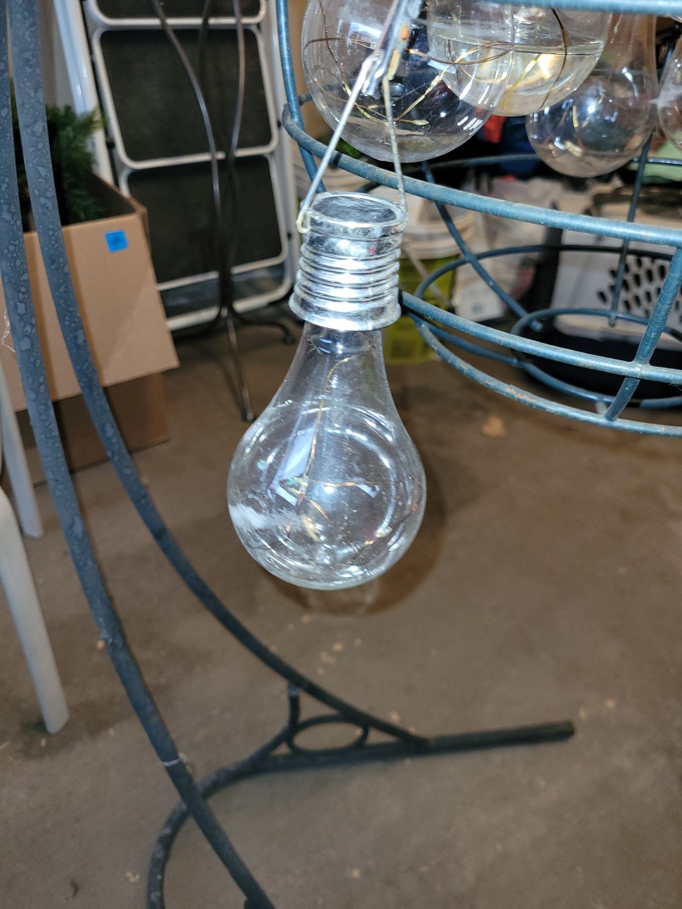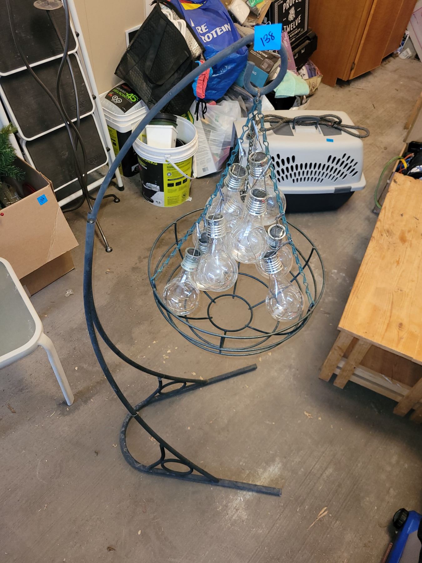 FREE STANDING HANGING PLANTER WITH 12 SOLAR LIGHT BULBS DECOR (INDIVIDUAL LIGHTS, NOT STRUNG, COMES WITH CLIPS.) PLANTER MEASURES 51" TALL. OVERSIZED SHIPPING.