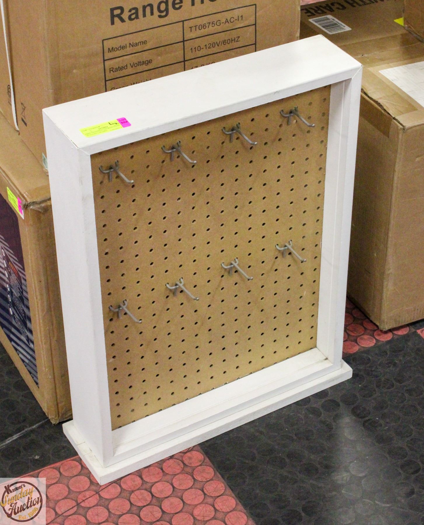 DISPLAY STAND INCLUDES PEGS (24.5"TALL X 19.5"L X 5.5"W) **ALL ITEMS MUST BE REMOVED BY 5PM SATURDAY, NOVEMBER 29TH 2025. ALL REMAINING ITEMS WILL BE SUBJECT TO A $6.00 PER DAY STORAGE CHARGE. ANY ITEMS REMAINING AFTER MONDAY, DECEMBER 15TH 2025 WILL BE CONSIDERED FORFEITED. NO REFUNDS WILL BE ISSUED FOR FORFEITED ITEMS. TO SCHEDULE A PICK UP APPOINTMENT CLICK HERE
