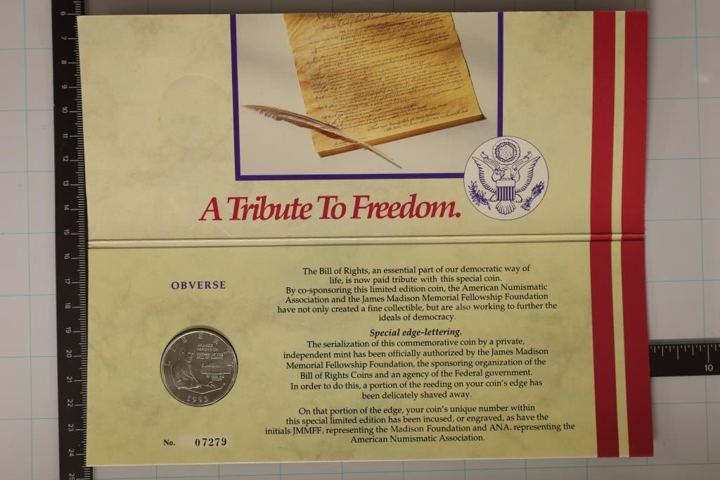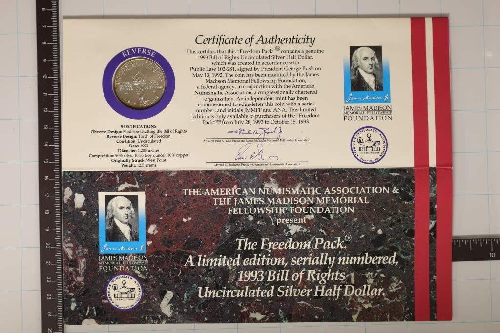 SILVER HALF DOLLAR FROM THE JAMES MADISON FOUNDATION, IN ORIGINAL ANA PACKAGING WITH CERTIFICATE