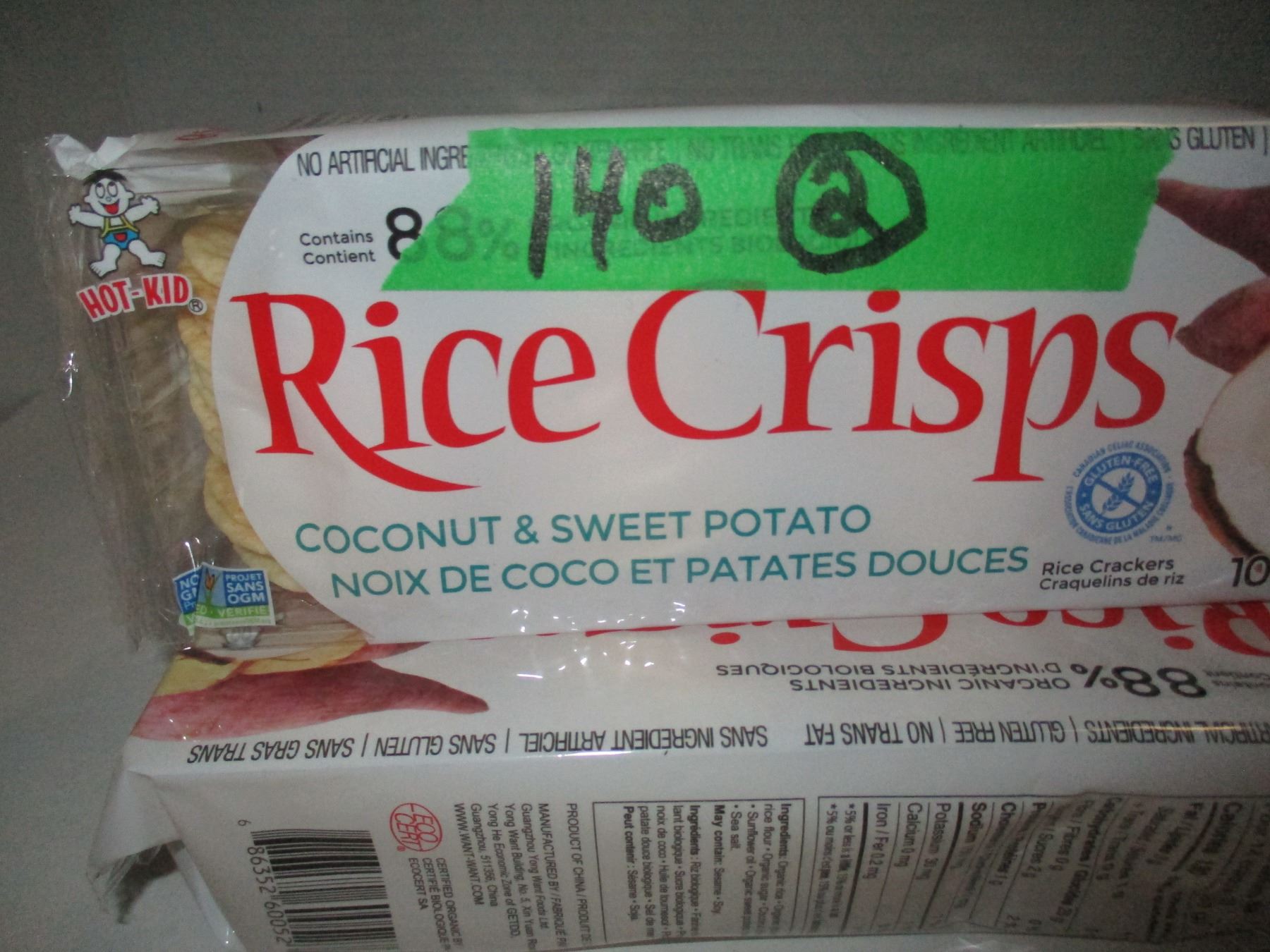 FREIGHT DAMAGE (AS IS):  COCONUT & SWEET POTATO RICE CRISPS - 2 PACKAGES