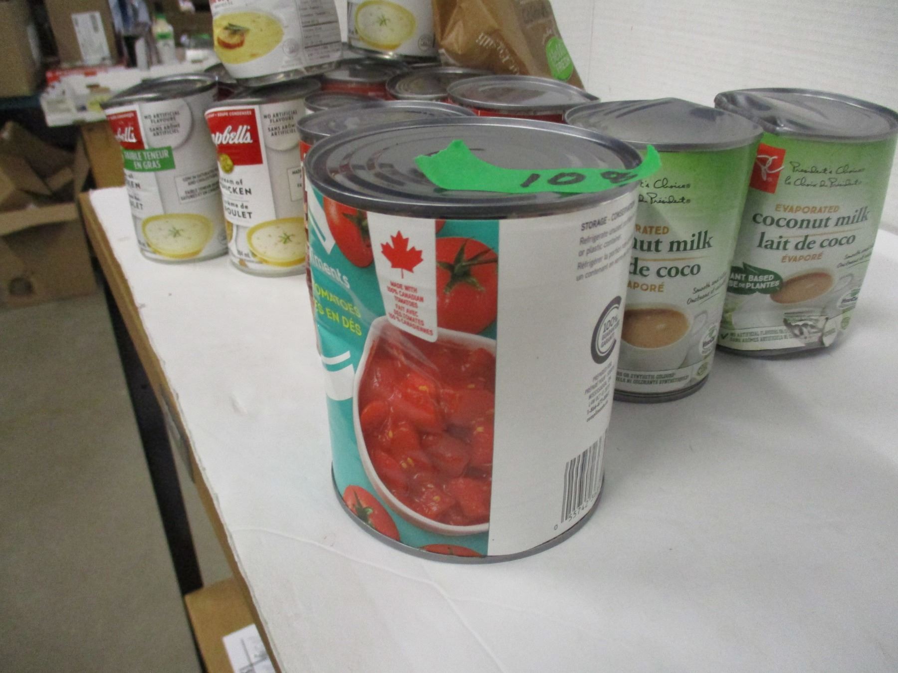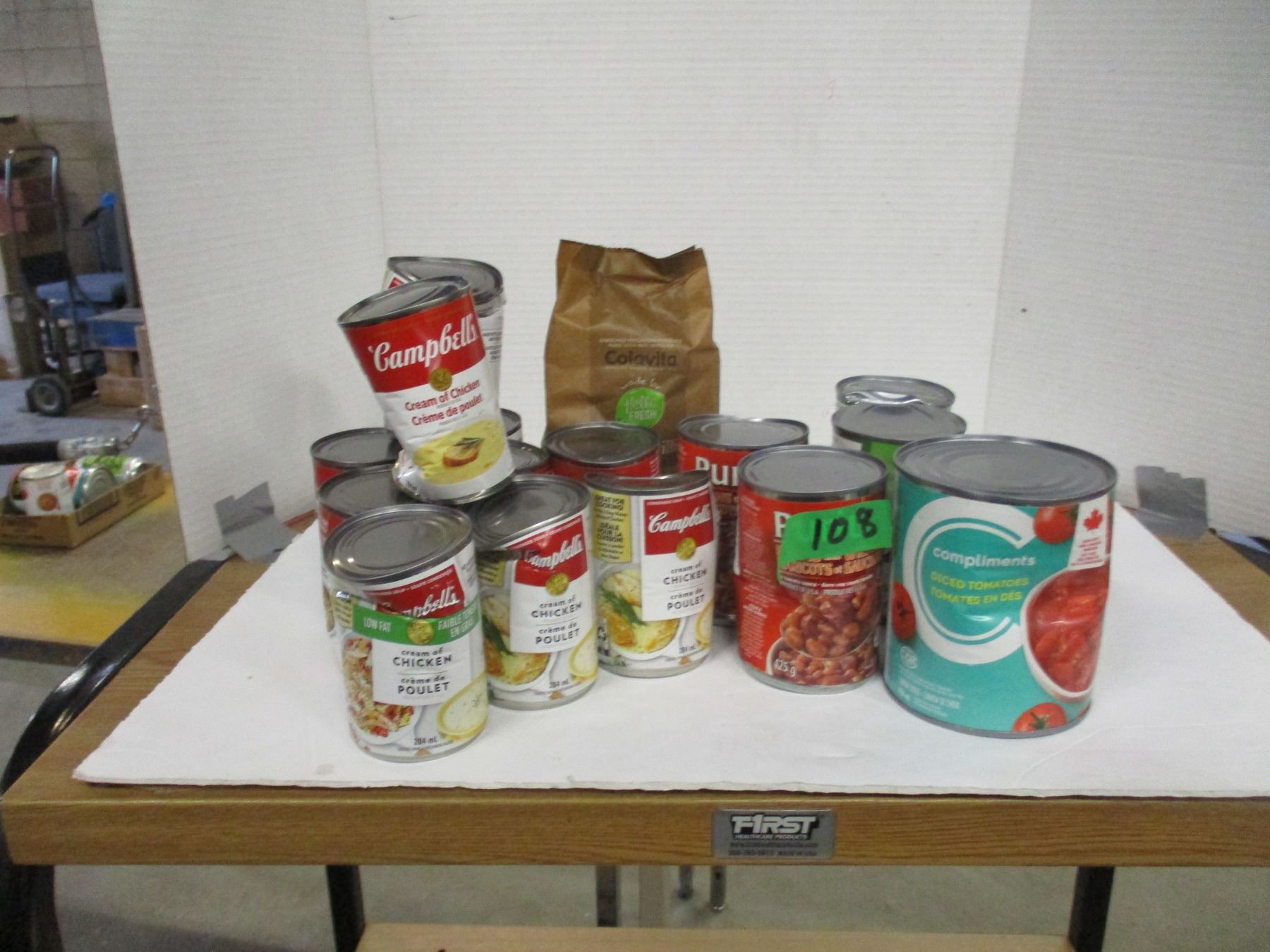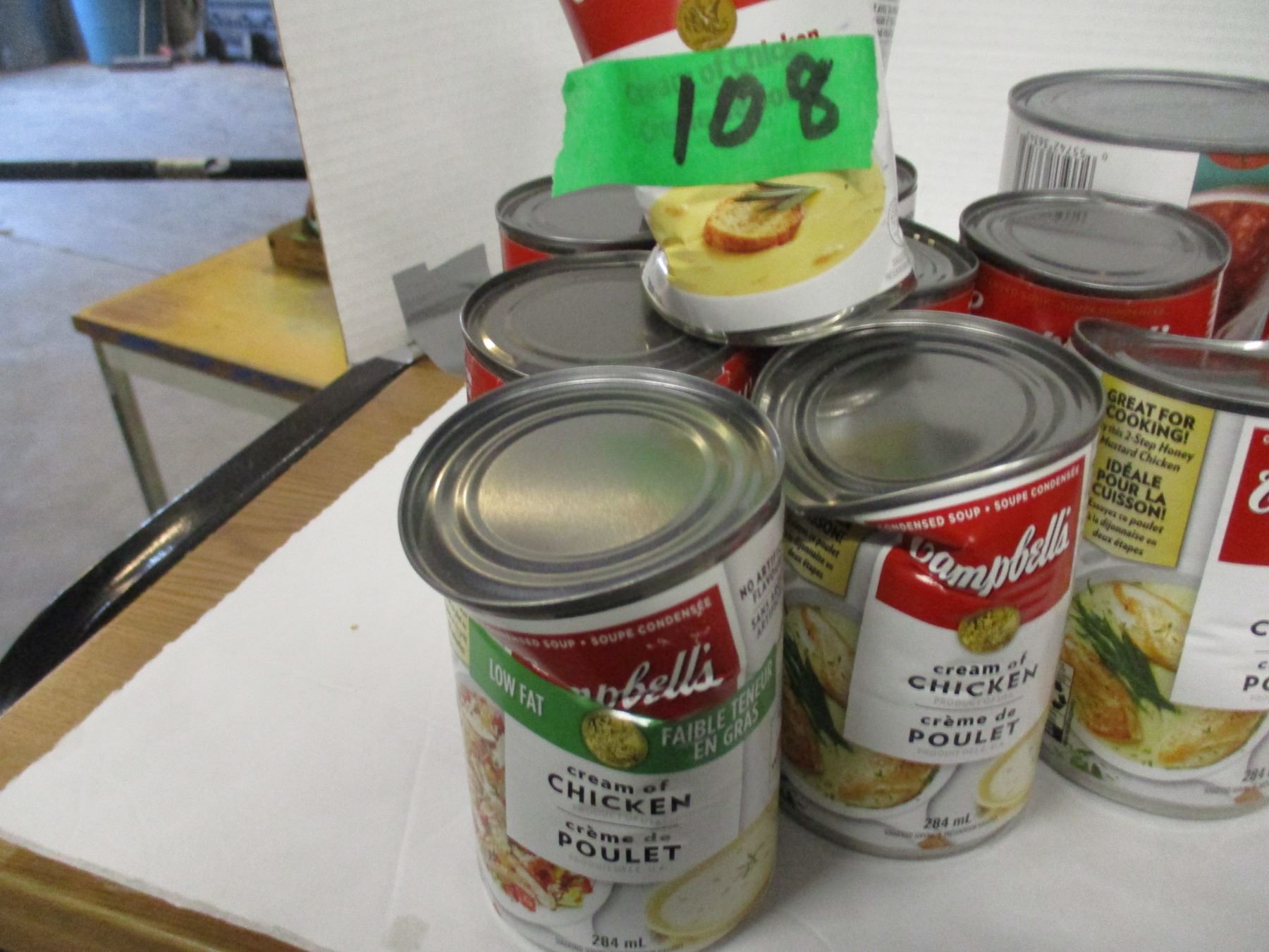 FREIGHT DAMAGE (AS IS): FLAT C/W APPROX. 16 CANS OF ASSORTED SOUP