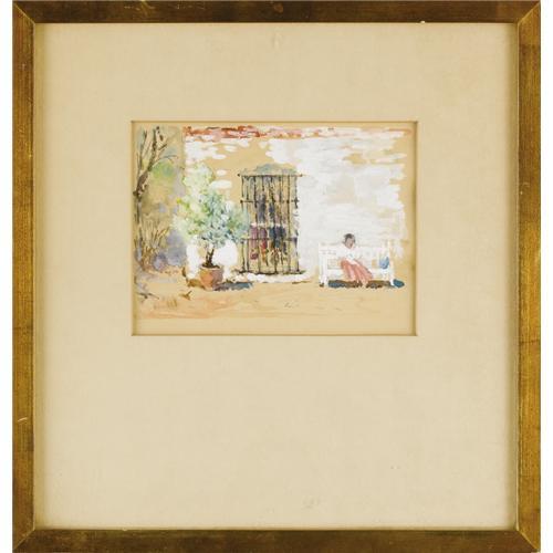 <B>FREMONT F. ELLIS</B></I> (American 1897 - 1985)<BR><I>Untitled,</B></I> circa 1957<BR>Watercolor on paper <BR>5 x 6 inches (12.7 x 15.2 cm)<BR><BR>Provenance:<BR>Gift from the artist to the parents of the present owner<BR><BR><BR><BR><b>Shipping:</b> Requires 3rd Party Shipping (<a target="_blank" href="http://www.heritageauctions.com/common/shipping.php">view shipping information</a>)