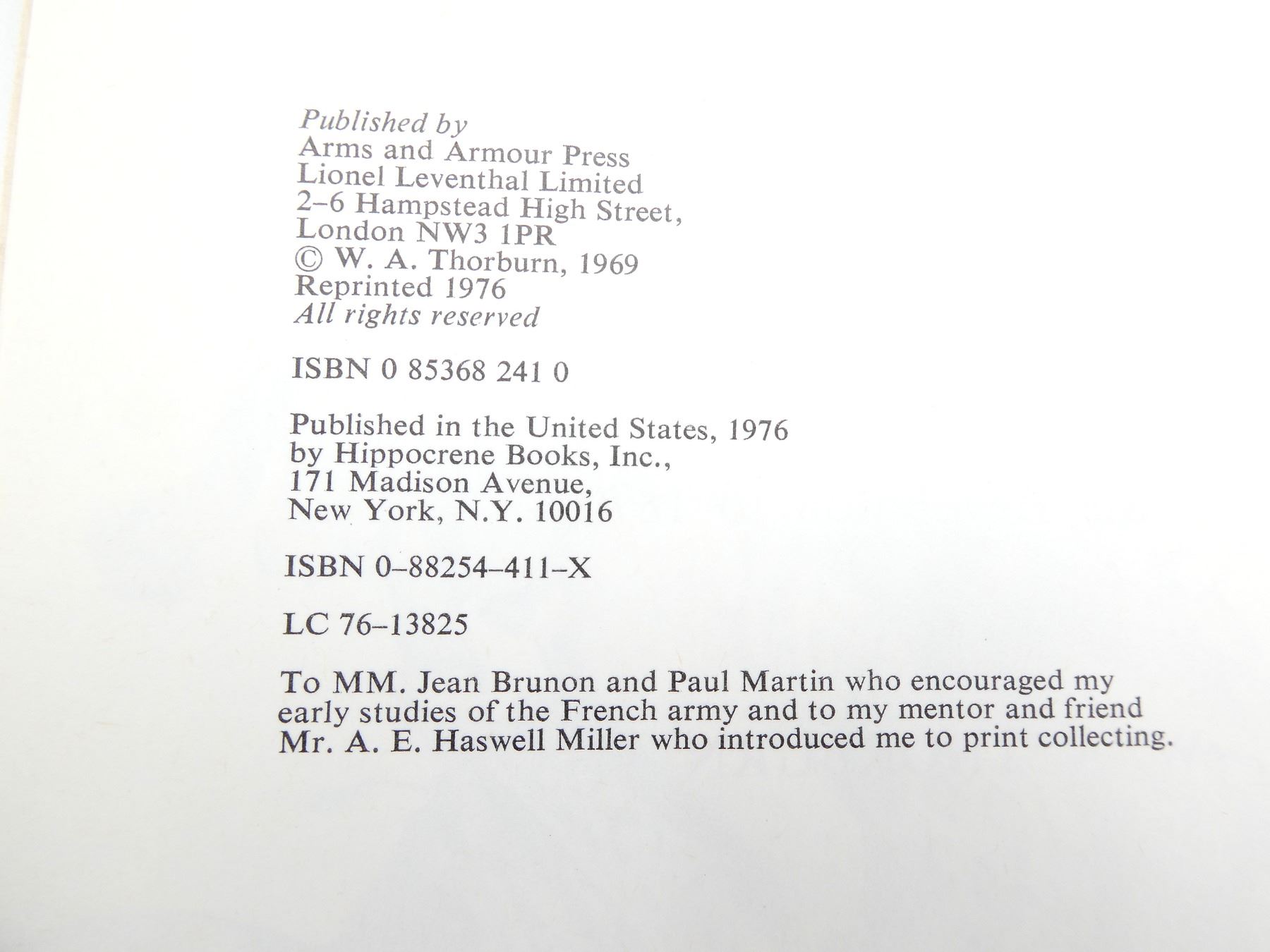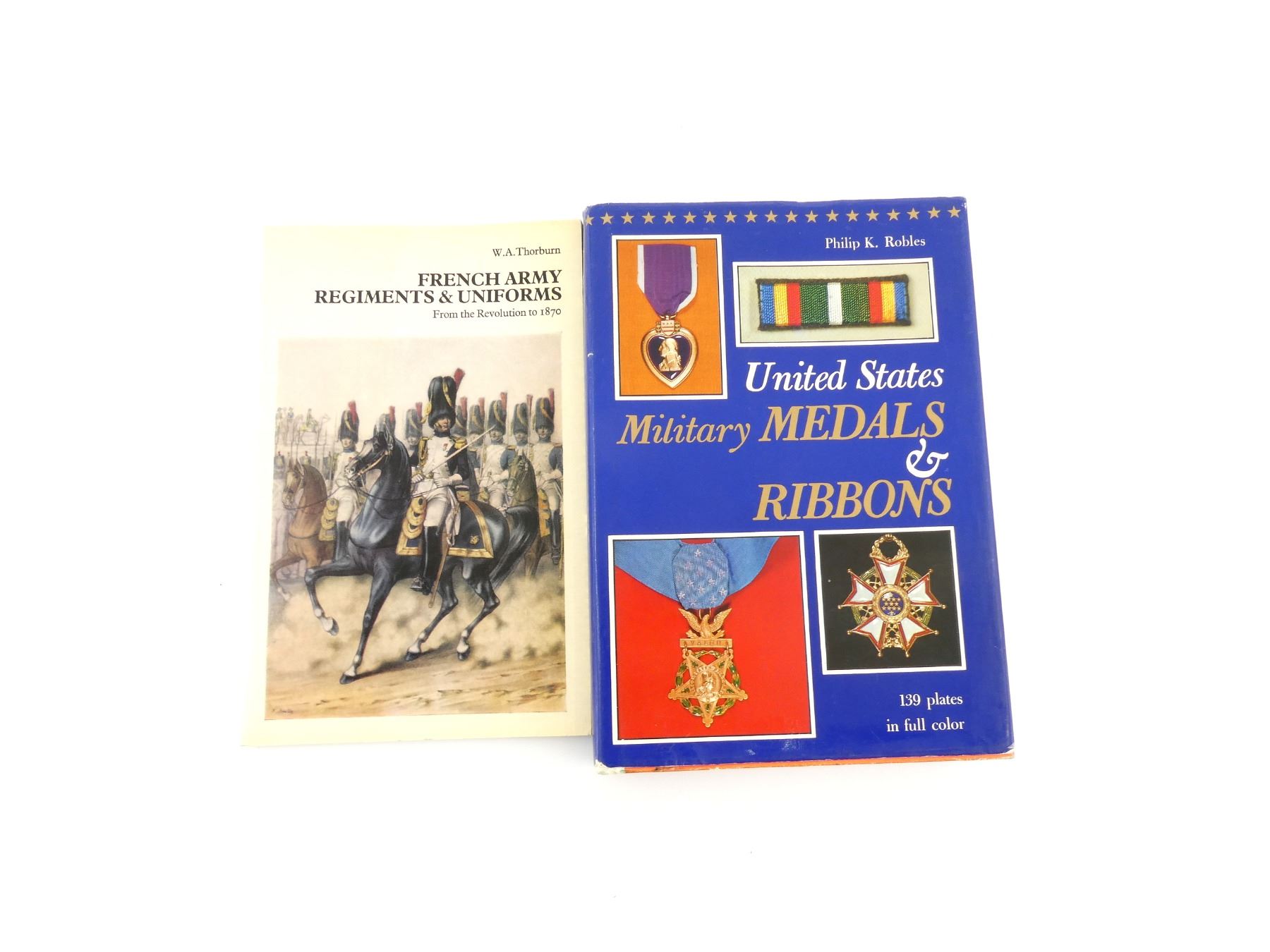 (1) "FRENCH ARMY REGIMENTS & UNIFORMS FROM THE REVOLUTION TO 1870" BOOK BY W.A. THORBURN, SOFT COVER, ISBN: 0-88254-411-X & (1) "UNITED STATES MILITARY MEDALS & RIBBONS" BOOK BY PHILIP K. ROBLES, HARD COVER WITH DUST COVER, ISBN: 0-8048-0048-0. SEE PHOTOS.