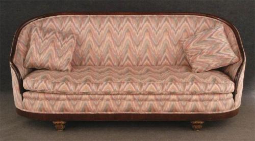 FRENCH ART DECO SOFA 80" long on giltwood acanthus carved feet, circa 1930