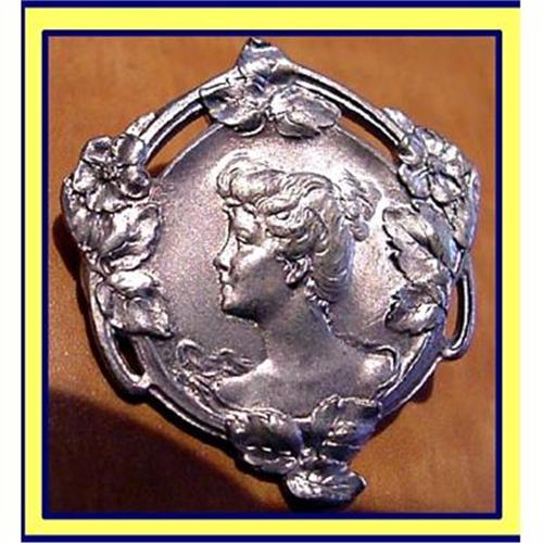 <tr><td>Title:FRENCH ART NOUVEAU SILVER BUTTON WOMAN HEAD</td></tr>