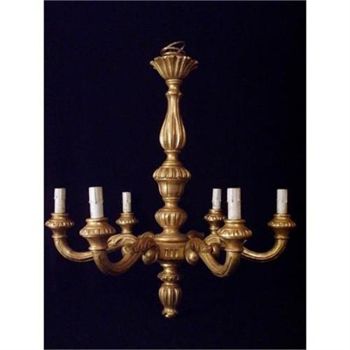 FRENCH BAROQUE GILT WOOD CHANDELIEER 6 ARMS BEAUTIFUL CARVING, MADE IN 1900'S CIRCA, IT HAS BEEN TOTALLY RESTORED AND REWIRED, WOOD CHANDELIER ARE VERY HARD TO FIND.<p>MEASURES ARE: H.25" D.23"<p>THE CHANDELIER WILL BE SHIPPED UNASSEMBLED.<p> ITEM COULD BE RETURNED IF IMPERFECTION ARE PRESENT FOR A FULL REFOUND.<p>I WOULD LIKE INTRODUCE MYSELF, I AM TIZIANA BASETTI, I CAME FROM MILAN ITALY TO FLORIDA A FEW YEARS AGO. MY HUSBAND DIEGO AND I HAVE AN EXTENSIVE WORKING HISTORY IN ANTIQUES. WE OPENED A SUCCESFUL SHOP "OLD WORLD ANTIQUES" ELEVEN YEARS AGO, WE REPRESENT RENOUND ARTISAN AS WELL AS DILL IN QUALITY ANTIQUE FURNITURE. I'M NOW EXPANDING MY BUSINESS TO INCLUDE THE INTERNET BY OFFERING A LARGE INVENTORY OF UNIQUE AND ONE OF A KIND ITEMS FROM MY NATIVE ITALY; SUCH AS MAJIOLICA, SILVER,FURNITURE, MURANO GLASS, JEWLERY, COINS AND MANY OTHER ITEMS. IF YOU ARE LOOKING FOR ANY PARTICULAR ITALIAN OR EUROPEAN OBJECT, LET ME KNOW, I WILL DO MY BEST TO ACCOMPLICE YOU! I REALIZE IT TAKES TIME FOR US TO BUILD A TRUSTING PROFESSIONAL WORKING RELETIONSHIP. MY GOAL IS TO PROVIDE YOU WITH A TOP QUALITY ITEMS FOR YOUR HOMES, COLLECTION, OR CLIENTS, AS WELL AS, SHARE MY KNOWLEDGE OF ITALIAN ITEMS WITH YOU. PLEASE DO NOT HESITATE TO CONTACT ME WITH ANY OF YOUR QUESTIONS, CONCERNS,OR NEEDS.<p>THANK YOU FOR YOUR TIME OR CONSIDERATION, & OLSO FOR TELLING YOUR FRIENDS AND ASSOCIATES ABOUT THE SE RVICES I PROVIDE.