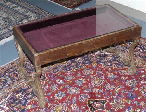 FRENCH BAROQUE STYLE VITRINE TABLE with glass top, SHIPPING: See recommended third party shippers. This item can't be packed or shipped by seller.