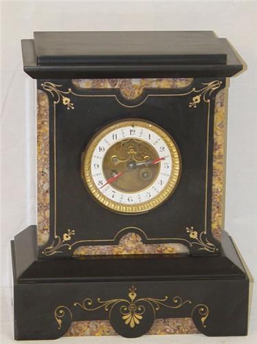 FRENCH BLACK SLATE MANTLE CLOCK-FACE SIGNED CLF DEPOSE - NORMAL WEAR