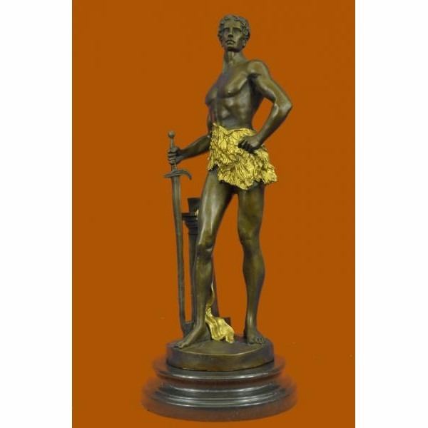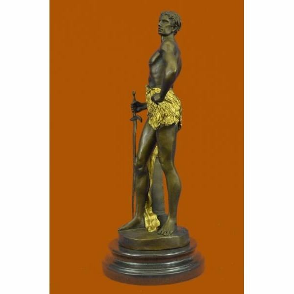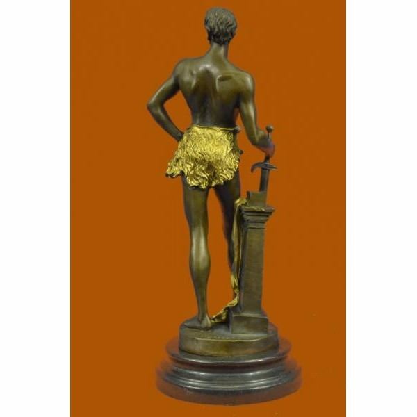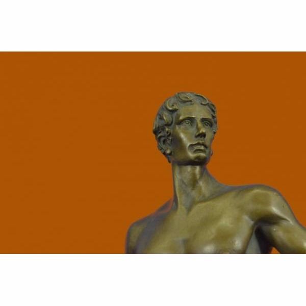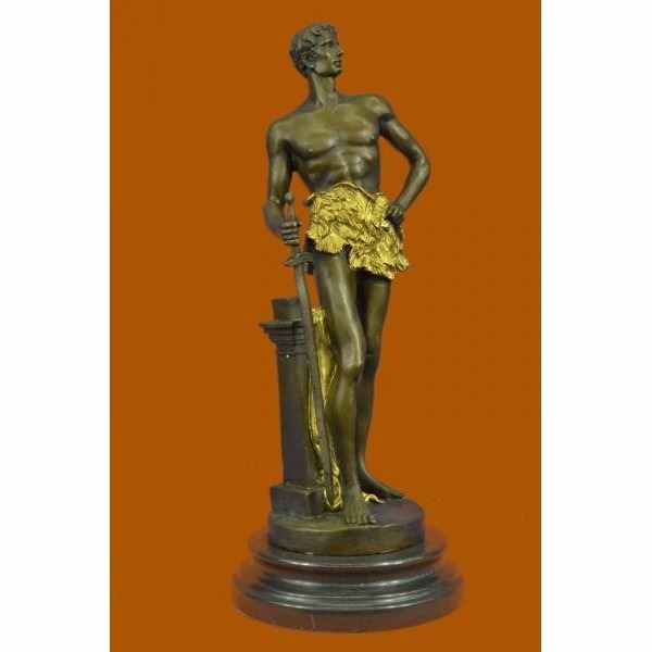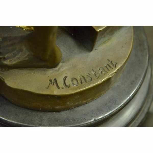 Marice Constant bronze "Boucheron" sculptureMaurice Joseph Constant (1892-1970 France) "Boucheron" bronze sculpture of a semi nude man holding sword", The handmade bronze sculpture was cast using the archaic method of lost-wax casting and stained with a brown and gold patina finish for perpetuation. He is mounted upon a black marble base with the artist M.Constant signature. Condition: This sculpture is in perfect condition. Bronze Dimensions with Marble Base:Height 15" x Width 6" Marble Dimensions: Diameter 6" Height without base: 14" Weight : 9 LBS Inventory 79STE3287BG57 97