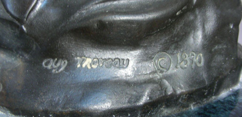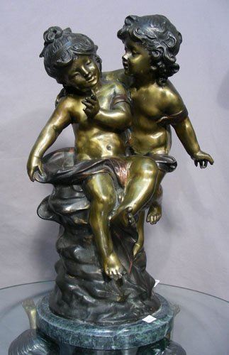 Classic bronze with two young children. Signed on base. Very fine detail. 21" high.