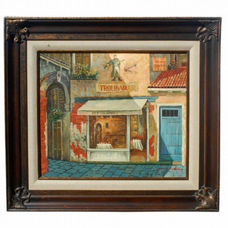 "FRENCH CAFE" - ORIGINAL HAND PAINTED OIL ON CANVAS - PROFFESSIONALLY FRAMED - IMAGE 20X24" - FRAMED 31X35"