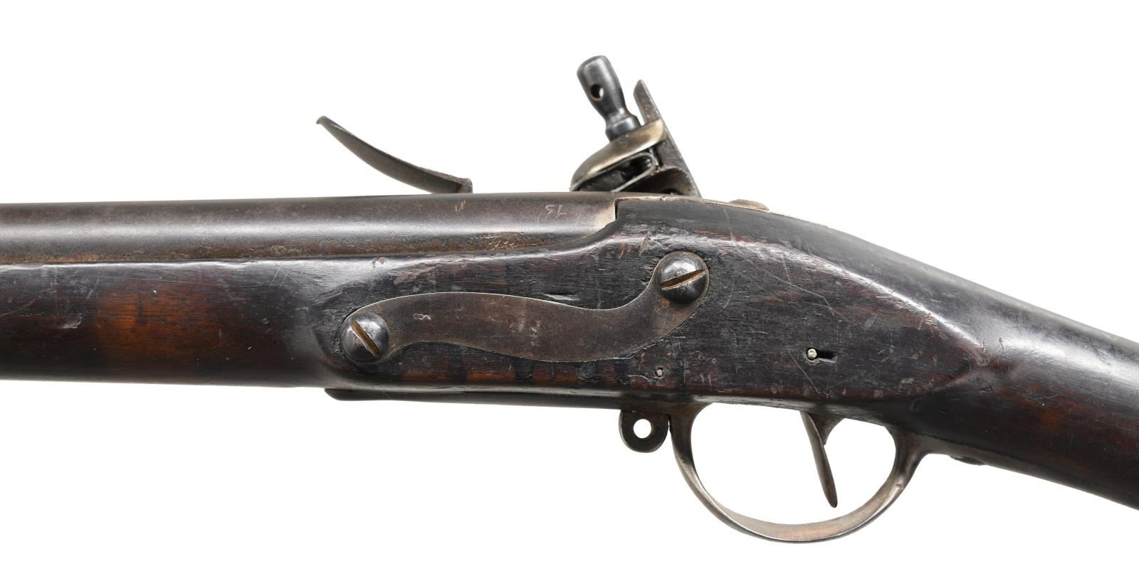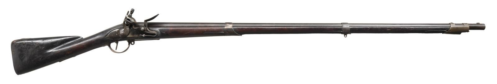 Cal. 69. NSN. Bbl. 44" rnd. Lock marked w/ Maubeuge arsenal markings & a fleur de lis over "R". Left side of bbl. marked "73". Tang markings are illegible due to oxidation. European hardwood stock. No sling swivels or ramrod present. CONDITION: stock has thick added finish w/ a few chips, a few cracks, scattered dings & handling wear. Metal is a dark oxidized patina w/ pitting at rear of bbl. & further scattered light pitting. Oxidized bore. (01-23703/MJC). ANTIQUE. $1500-2500.