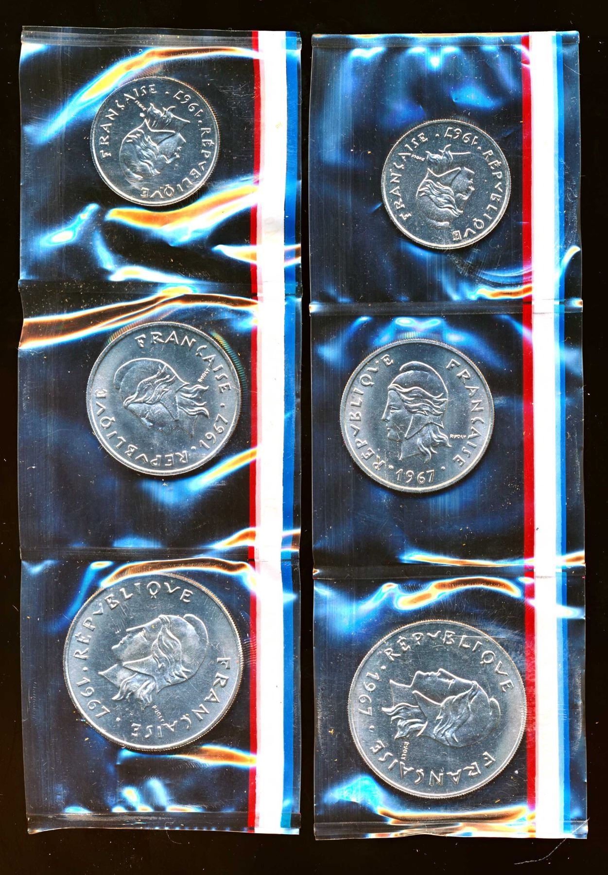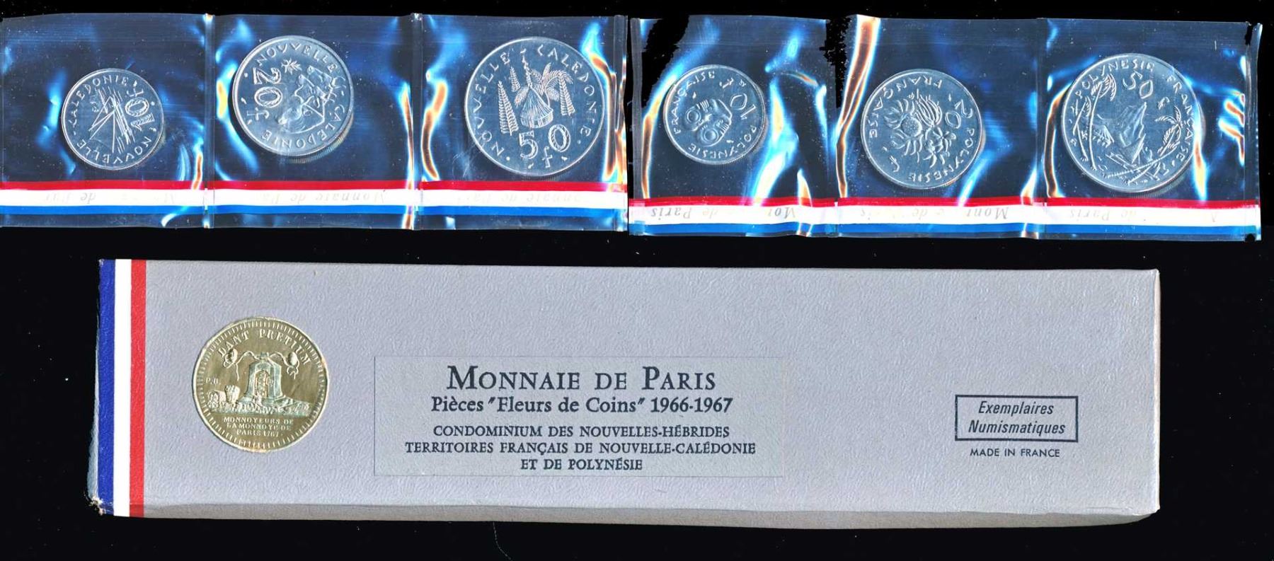 Monnaie de Paris French Fleurs de Coins Condimium of New Hebrides, New Caledonia and French Polynesia 1966-1967 Set Mintage:2200 sets