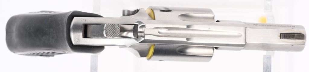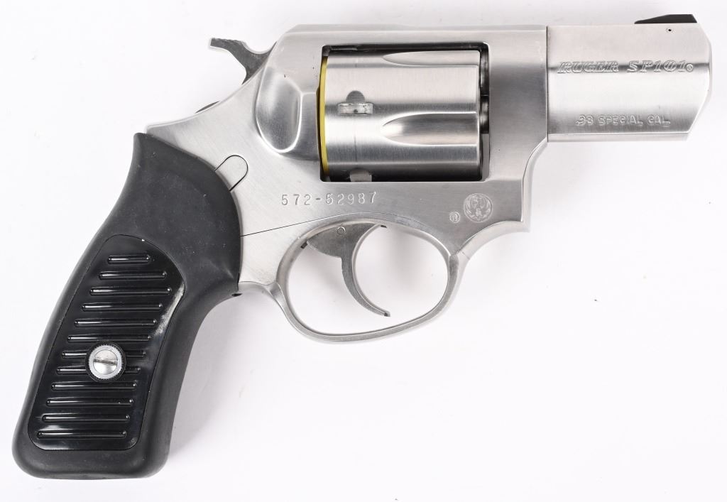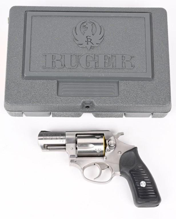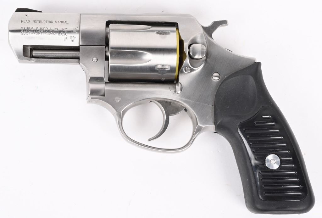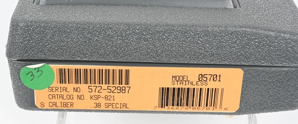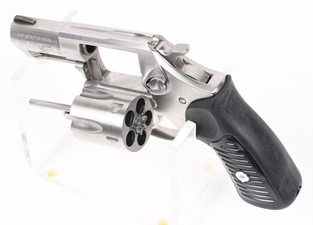 SERIAL NUMBER: 572-52987. BARREL: 2-1/4". CALIBER: .38 SPECIAL. MANUFACTURED: 2000's. Made for French police units. French "crown" proofs on the barrel, frame and cylinder. Other markings and features are normal. 5 shot fluted cylinder. Standard sights. Polished stainless steel finish on the metal components. Special lanyard loop cut in the butt. Includes lock, manual and serial matching hard case. CONDITION: Metal and grips are excellent overall, with a few handling marks. Bore is shiny with crisp rifling. Sharp mechanics. Case is excellent. Consecutive serial numbered to the next lot. MODERN
