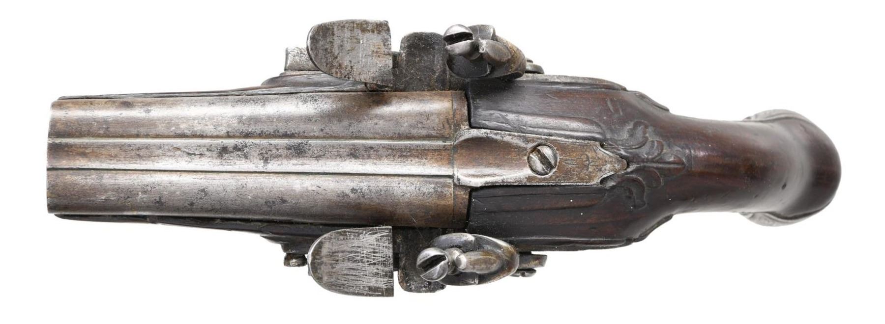 FRENCH DOUBLE FLINTLOCK POCKET PISTOL.
