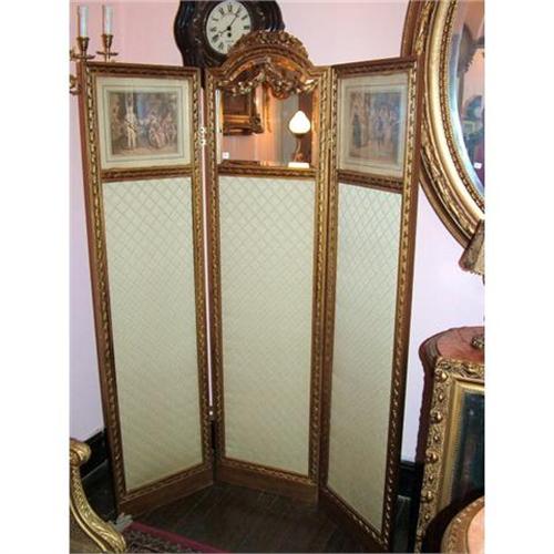 a beautiful antique ,19th century, three part French dressing screen. new upholstery, two beautiful antique painted etchings,(watercolor), A wonderful size, the screen measures 65 inches tall and 48 inches wide when completely opened. Hinged to fold both ways. Great condition.PAYMENT TERMS FOR U.S.: No Wallet. No Wait. No Worries, simply select Bill Me Later® at checkout, "zero fraud liability" protection. EUROPEAN CLIENTS: IBAN transfer available.