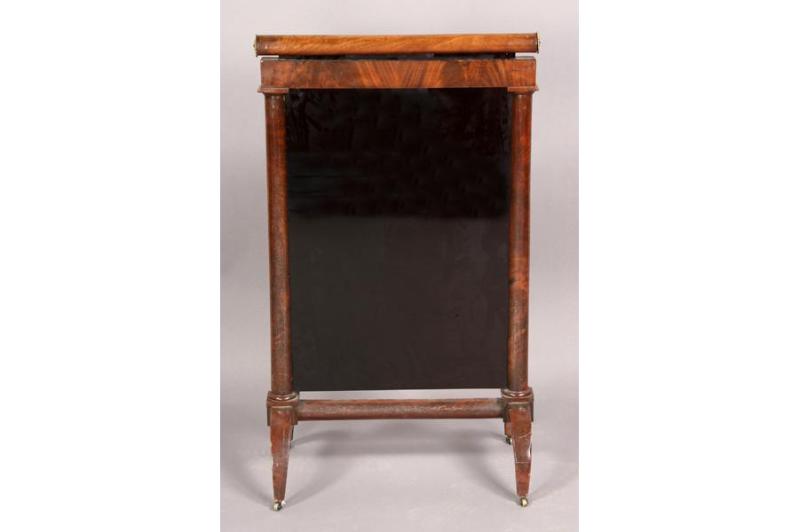French Empire style fire screen. The turned top with bronze mounted ends over two columns flanking a black glass panel circa 1910. Ht: 36.5" Width: 22.5" Depth: 13" ***PLEASE NOTE: All property shall be paid for by the purchaser within five (5) business days of the sale. Kamelot Auctions accepts cash (In house only), personal checks, certified checks and money orders. We do not accept credit cards or Paypal under any circumstances. Please note our policy regarding payments from International buyers: The only acceptable method of payment is a bank wire/bank transfer. For invoices more than $1000, there is no additional fee for this service. For invoices less than $1000, please include an additional $25 wire fee. We will be happy to forward our bank wiring information after the completion of the auction. Thank you for your understanding and cooperation. All purchases must be removed within 15 business days after an auction. Property not removed from our facility after 15 business days will be moved to an off-site storage facility at a charge of $10.00 per day payable by the buyer. Kamelot does NOT provide shipping services or estimates. However, we recommend the following independent shipping services: Antique Transport Co. at antiquetransport@cs.com, Farren Transport at farrentransport@comcast.net or All Points Shipping at jb@allpointsshippingnj.com for quotations and shipping arrangements for furniture and other large items that would require a blanket wrap shipping company. For quotations and shipping arrangements for smaller items that would traditionally be shipped through UPS, please contact The UPS Store at store4744@theupsstore.com or The Packaging Store at hrpa112@aol.com. Clients are welcome to pick up their items from our location or make their own shipping arrangements.