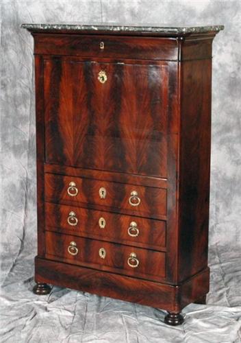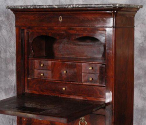 FRENCH EMPIRE SECRETAIRE A ABATTANT with marble top, 33" wide case, 56" high, condition: shrinkage splits to sides, circa 1810, SHIPPING: See recommended third party shippers. This item can't be packed or shipped by seller.