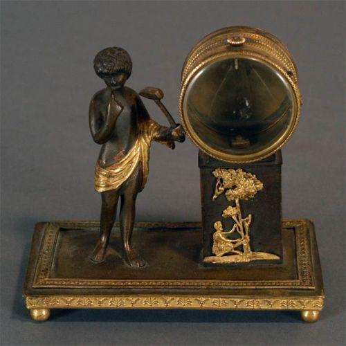 FRENCH EMPIRE STYLE CLOCK CASE, lacking movement, 5" high, 19th century, condition: excellent, PACKING AND SHIPPING (excluding insurance) $20,