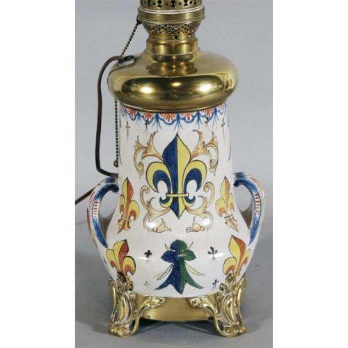 1 FRENCH FAIENCE VASE adapted to a lamp 9" high (vase only)