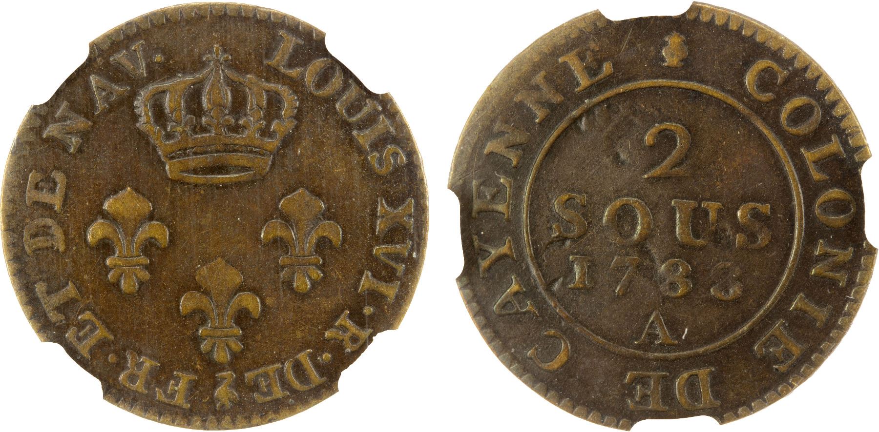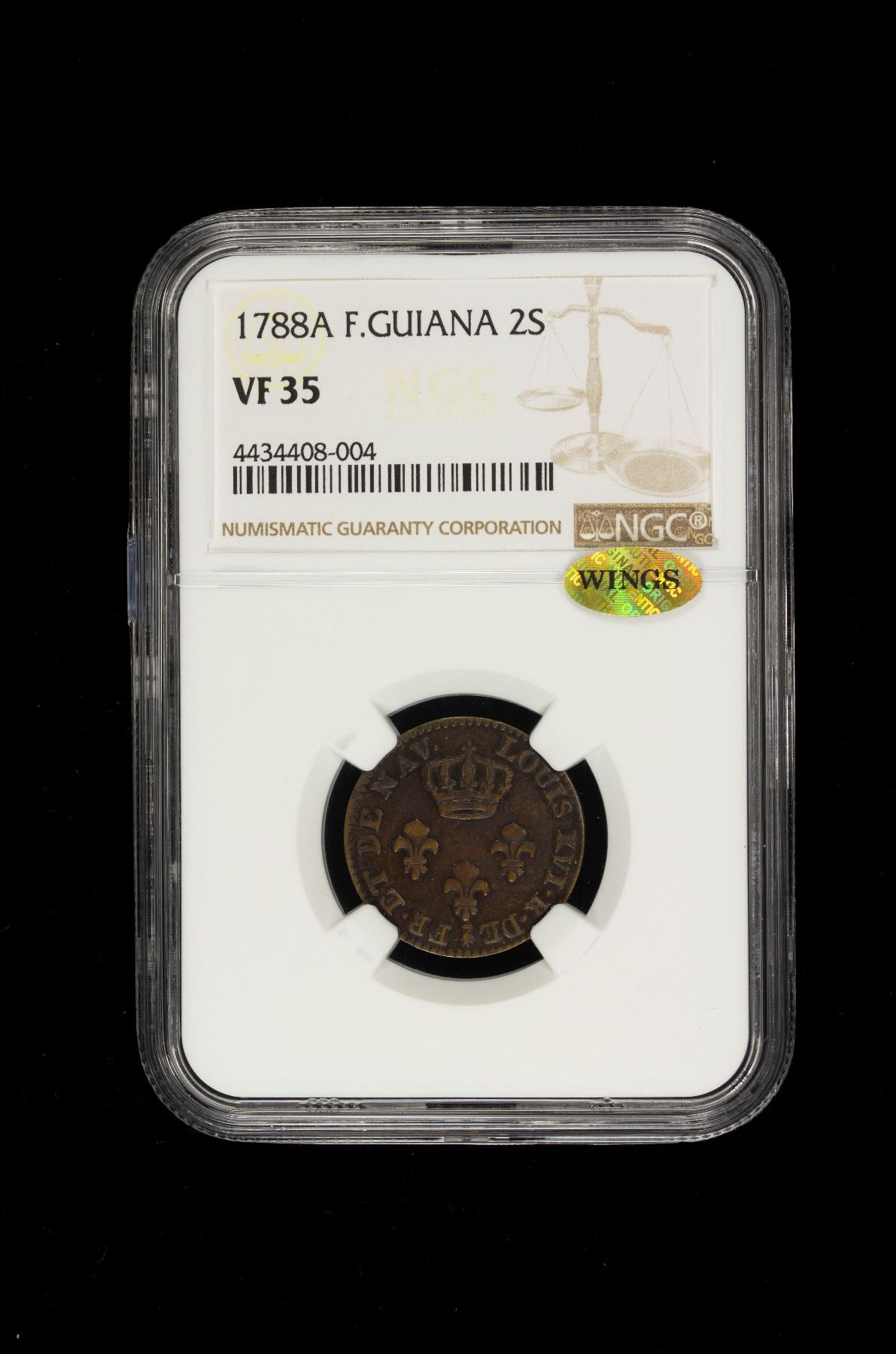 FRENCH GUIANA: Louis XVI, 1774-1793, BI 2 sous, 1788-A, NGC VF35