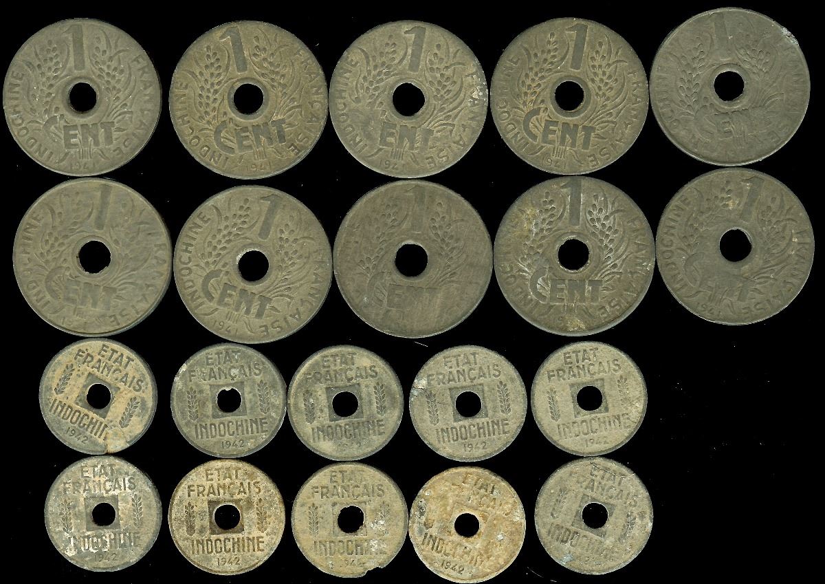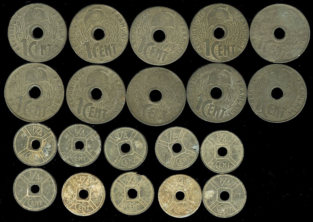FRENCH INDO-CHINA 1942 1/4 CENT KM#25 VF AND 1941 CENT KM# 24.3 VF/XF 20 COINS
