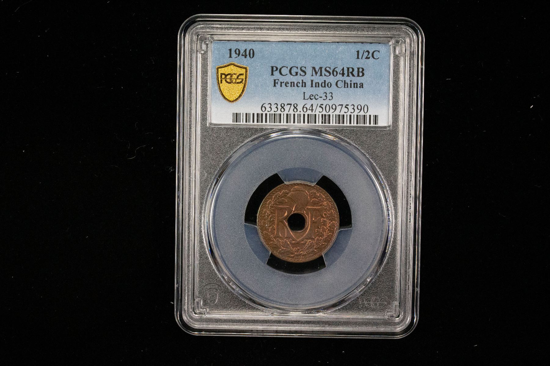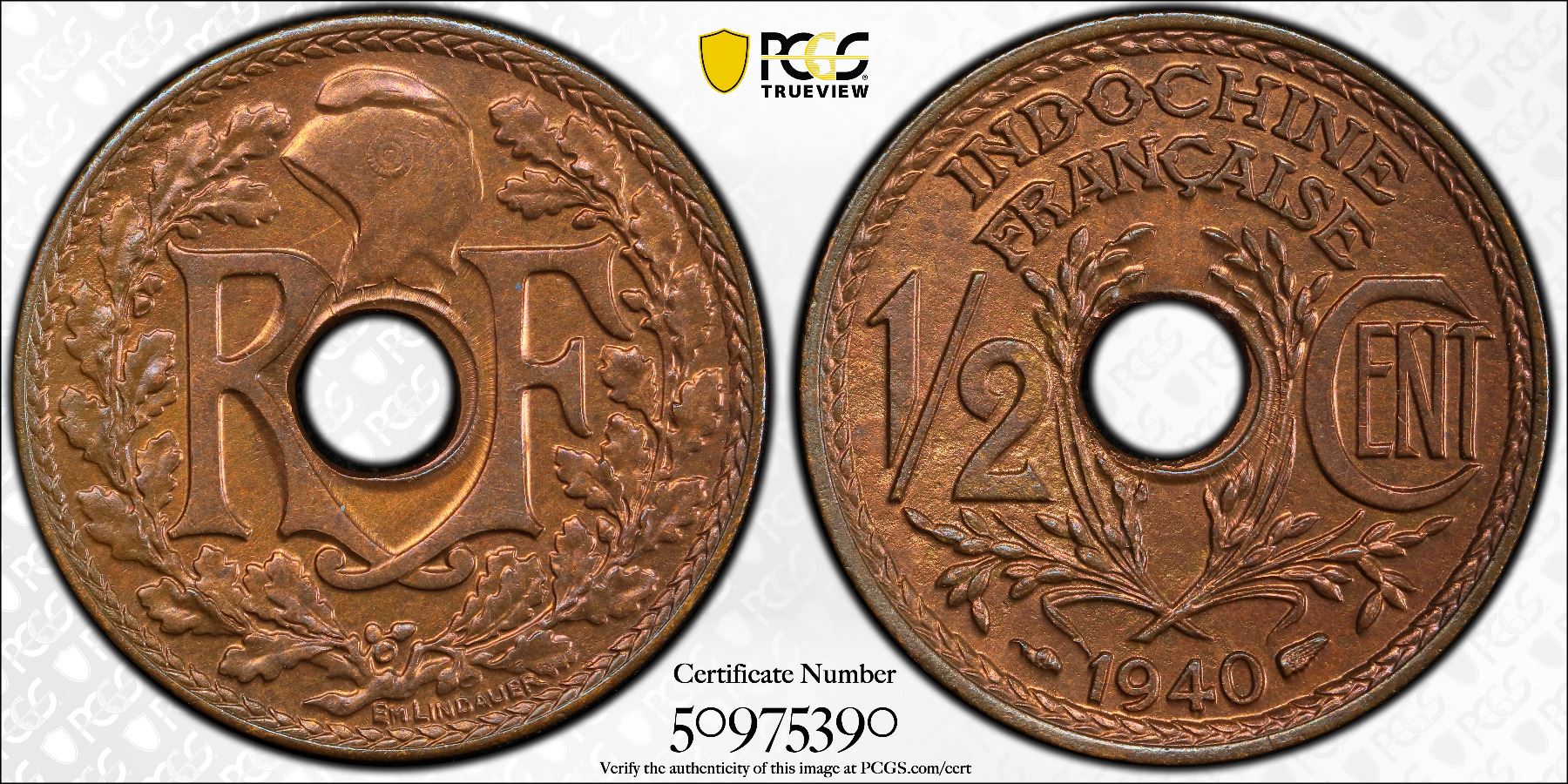 FRENCH INDOCHINA: AE 1/2 centime, 1940, KM-20, a wonderful mint state example of this key date! PCGS graded MS64 RB.