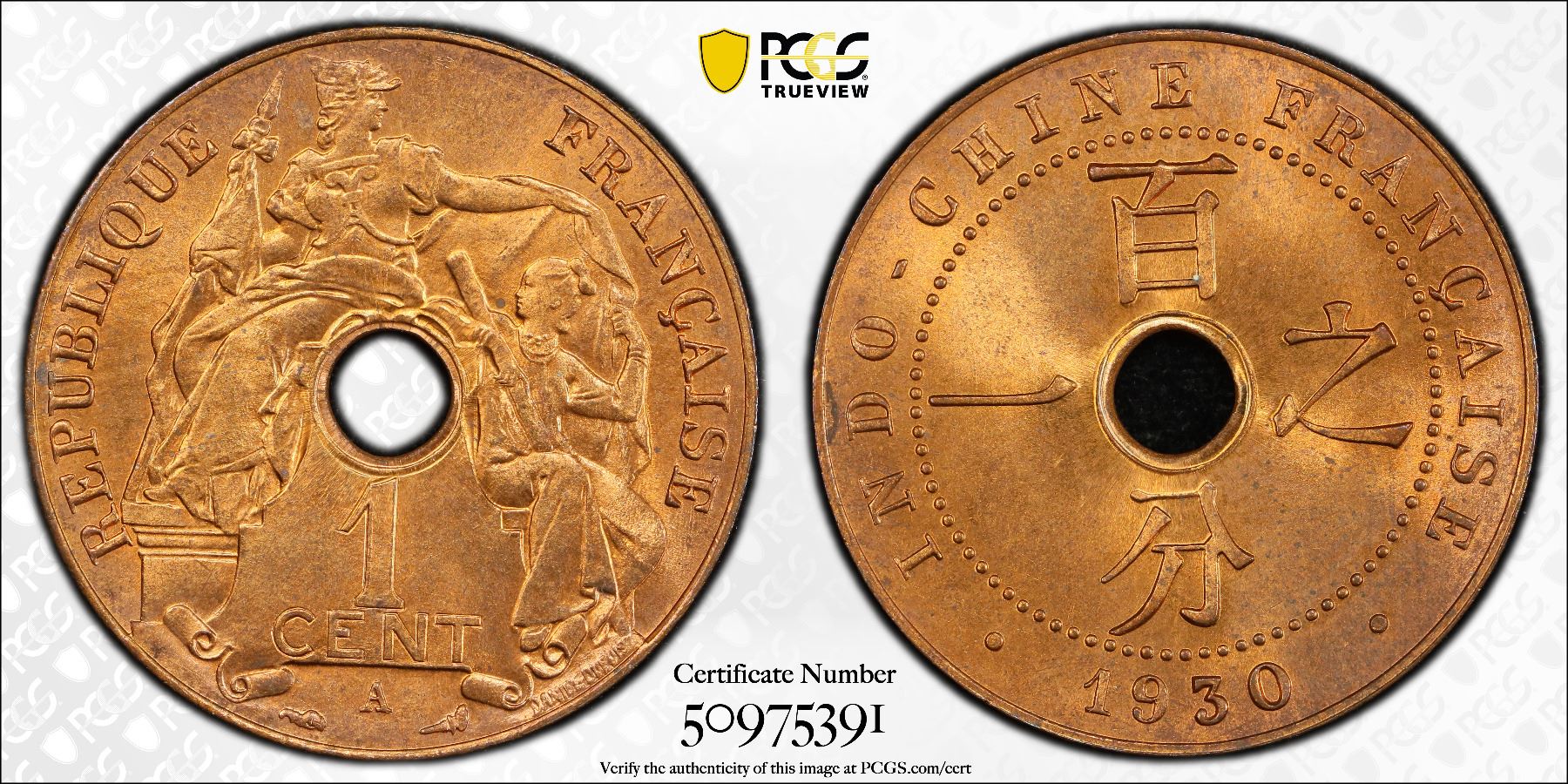 FRENCH INDOCHINA: AE centime, 1930-A, KM-12.1, a fantastic red lustrous example! PCGS graded MS66 RD.