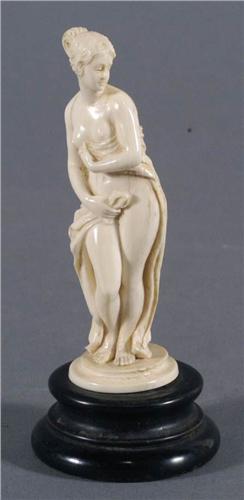 FRENCH IVORY FIGURE OF VENUS 5 1/4" high with base 19th century, condition: excellent. packing and shipping w/in continental USA (excluding insurance) $25