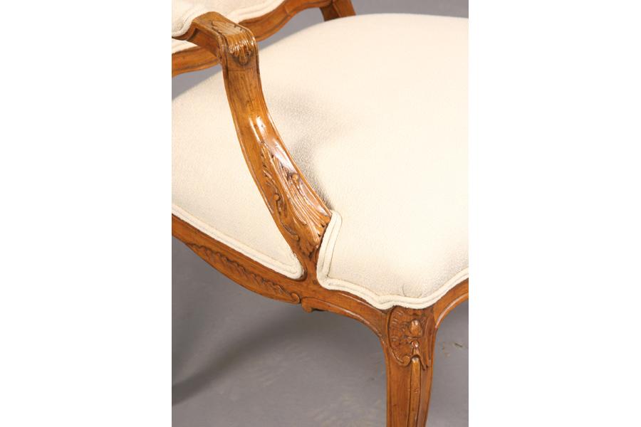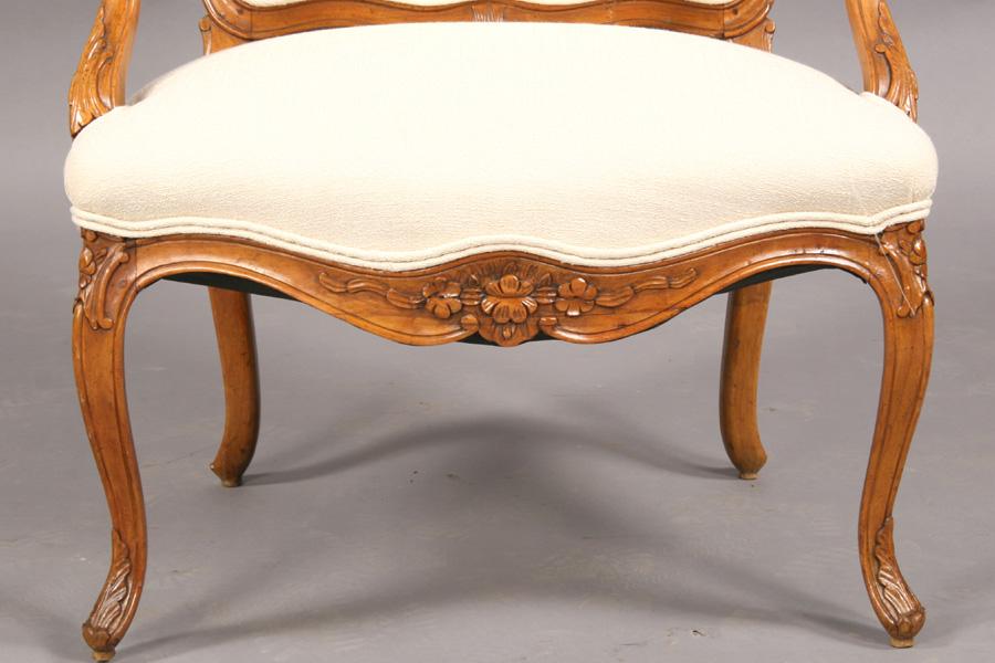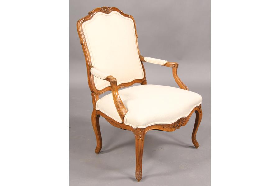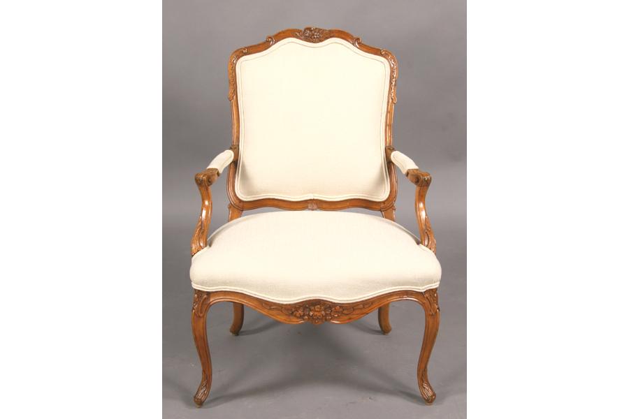 French carved walnut Louis XV style bergere with shaped and upholstered back and seat, downswept arms and cabriole legs circa 1960. Ht: 38" Width: 26" Depth: 20" ***PLEASE NOTE: All property shall be paid for by the purchaser within five (5) business days of the sale. Kamelot Auctions accepts cash (In house only), personal checks, certified checks and money orders. We do not accept credit cards or Paypal under any circumstances. Please note our policy regarding payments from International buyers: The only acceptable method of payment is a bank wire/bank transfer. For invoices more than $1000, there is no additional fee for this service. For invoices less than $1000, please include an additional $25 wire fee. We will be happy to forward our bank wiring information after the completion of the auction. Thank you for your understanding and cooperation. All purchases must be removed within 15 business days after an auction. Property not removed from our facility after 15 business days will be moved to an off-site storage facility at a charge of $10.00 per day payable by the buyer. Kamelot does NOT provide shipping services or estimates. However, we recommend the following independent shipping services: Antique Transport Co. at antiquetransport@cs.com, Farren Transport at farrentransport@comcast.net or All Points Shipping at jb@allpointsshippingnj.com for quotations and shipping arrangements for furniture and other large items that would require a blanket wrap shipping company. For quotations and shipping arrangements for smaller items that would traditionally be shipped through UPS, please contact The UPS Store at store4744@theupsstore.com or The Packaging Store at hrpa112@aol.com. Clients are welcome to pick up their items from our location or make their own shipping arrangements.