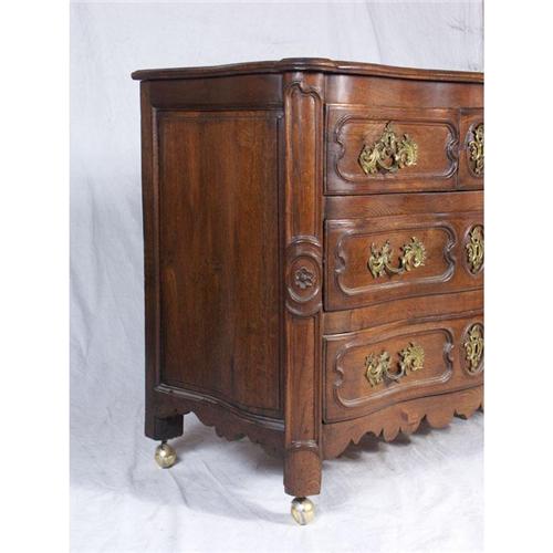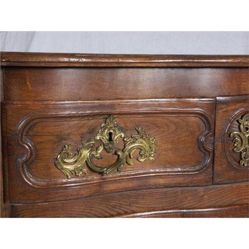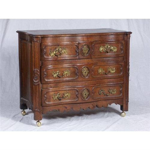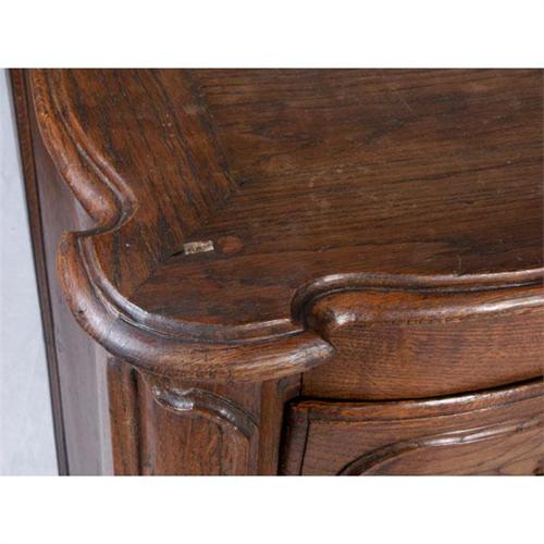 COMMODE: French Louis XIV Provincial style oak serpentine shape commode. 41''h x 24''d x 49''w