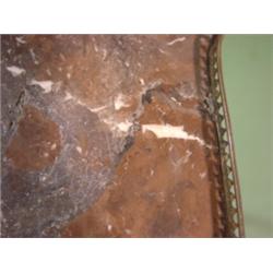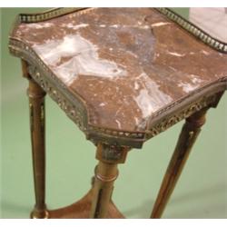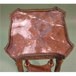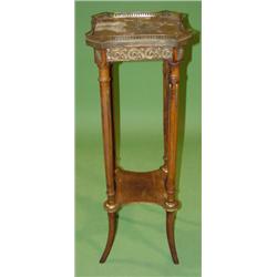 FRENCH MARBLE TOP PLANT STAND WITH BRASS EDGE AROUND TOP. Slight fading and chipping to top of marble. 33"H, 10.5"W, 10.5"D.