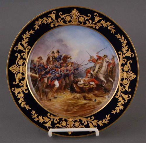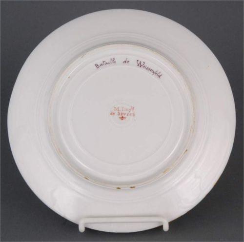 FRENCH MILITARY CABINET PLATE, 9" diameter, with Sevres mark, Bataille de Weissenfeld, signed Faraguet, condition: excellent.