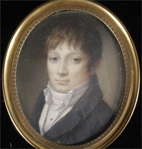 FRENCH MINATURE PORTRAIT, Young Gentleman, early 19th c, 72 mm x 60 mm, CONDITION: excellent. PACKING AND SHIPPING excluding insurance within the Contintental U.S. $20, multiple lots of miniatures may be combined at a an additional $5 shipping per miniature.