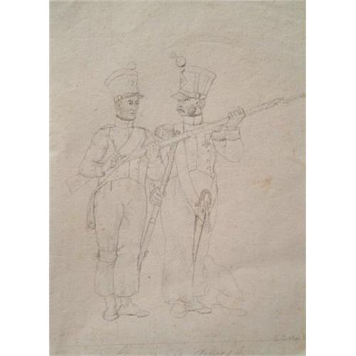 GOOG DRAWING OF TWO FRENCH SOLDIERS. MINOR STANING
