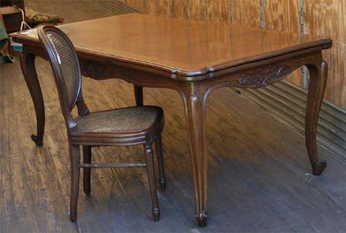 FRENCH PARQUESTRY DINING TABLE AND SIX MATCHING CHAIRS