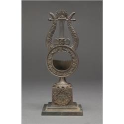 surmounted by a lyre raised on a pedestal and stepped plinth base, ht. 8.9" - 22.5 cm., early