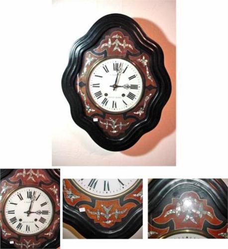 FRENCH PICTURE FRAME MOREZ TIME AND STRIKE WITH HOUR REPEAT SOLD BY J. MATRAT 1870'S. 24" X 19" X 5.5". OEIL DE BOEF = BULL'S EYE MOREZ MOVEMENT. VALUATION: 750-850 USD.