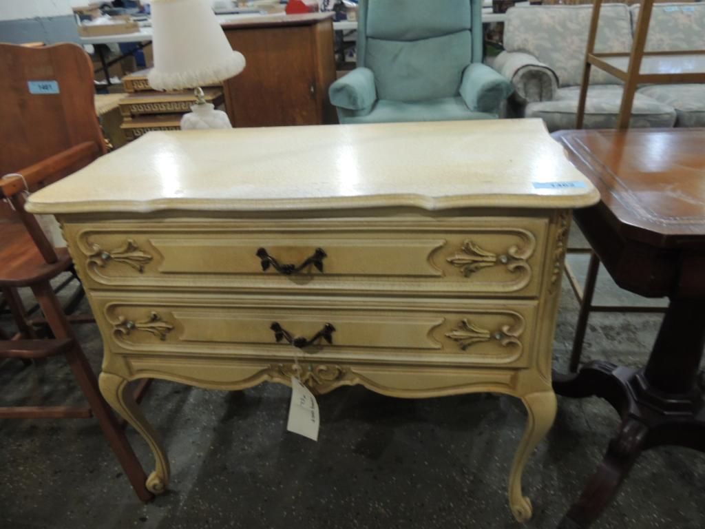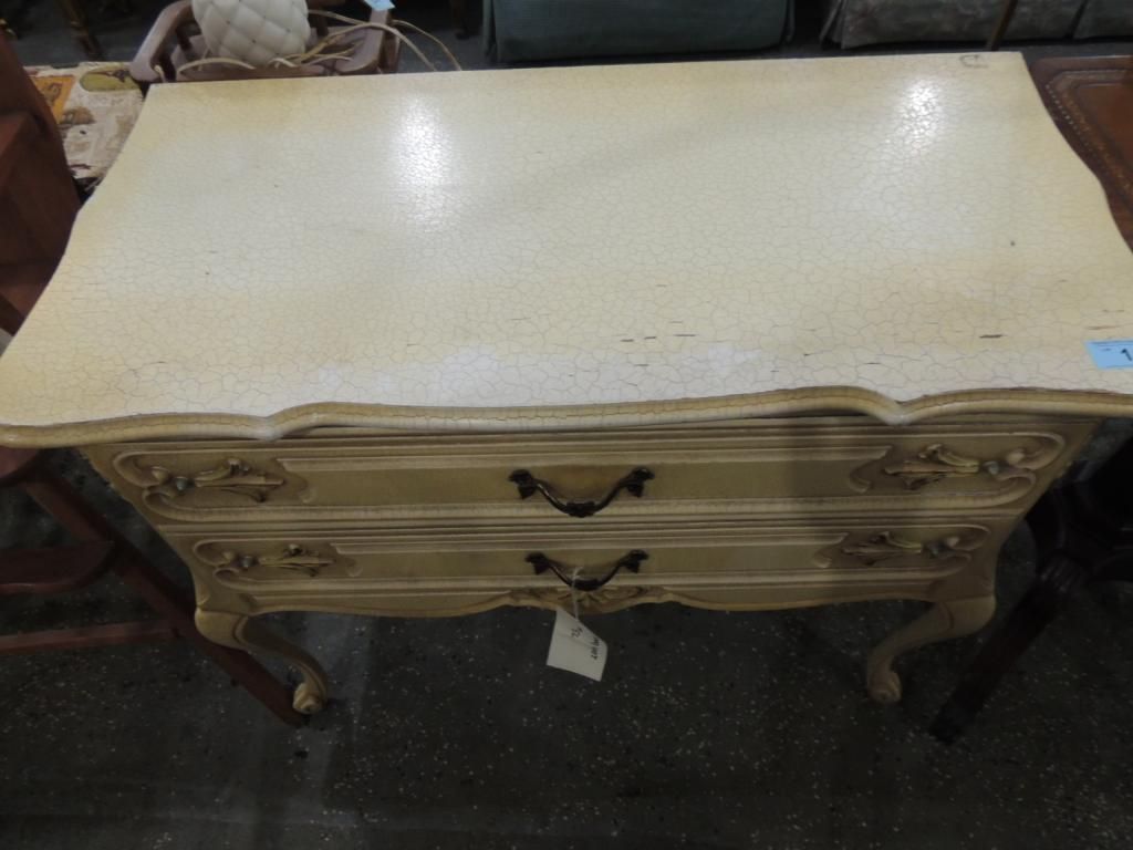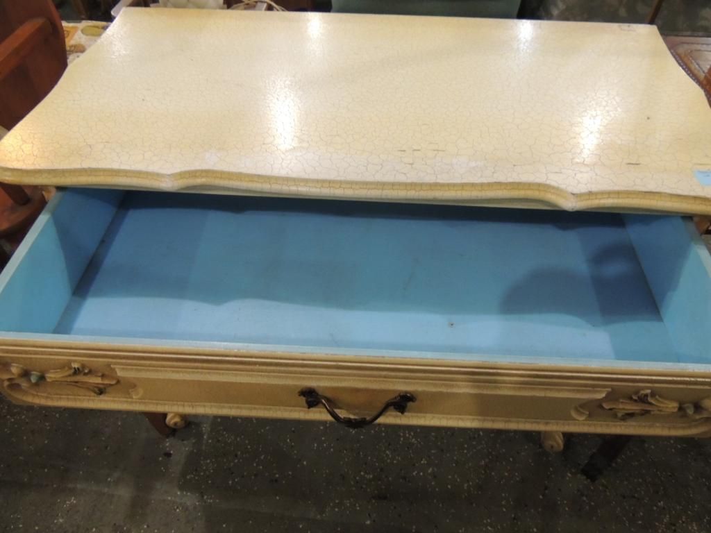 DESK PARLOR TABLE. VINTAGE FRENCH PROVINCIAL DESK. PAINTED. AS SHOWN. SEE PHOTO FOR MORE DETAILS.