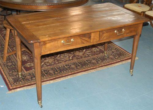 FRENCH PROVINCIAL WALNUT LIBRARY TABLE, 55"x29"x30", replaced pulls, early 19th century, SHIPPING: See recommended third party shippers. This item can't be packed or shipped by seller.