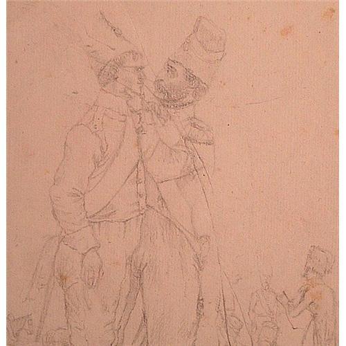 GOOG DRAWING OF TWO FRENCH SOLDIERS.CHILD WITH PENCLE LIKED THIS DRAWING PENCIL MARKS.SHOULD BE ABLE TO FIX. MINOR STANING